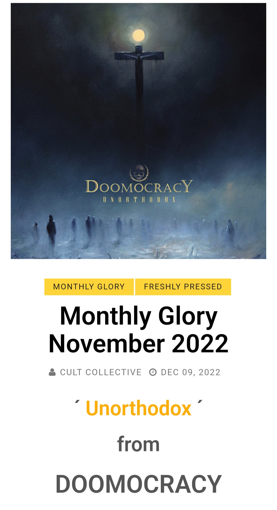 Doomocracy 's Unorthodox is Album of the Month